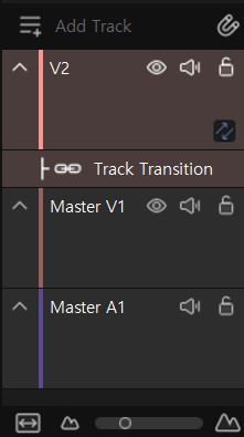 Track Menu > Use the pop-up menu to add or delete a video/audio track. The pop-up menus include: add video tracks, add audio tracks, delete video tracks, delete empty tracks, and transition tracks on/off. Use the Delete Empty Track menu to delete an empty track that is not used. But, the master track cannot be deleted. |