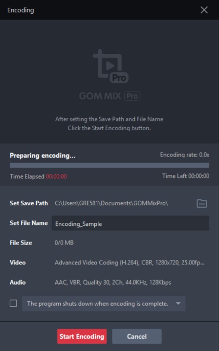 - The program shuts down when encoding is complete: Shuts down the GOM Mix Pro program when encoding is complete.
