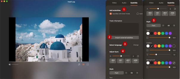 | Style | It allows you to change font, text style, outline, background for subtitle. You can also set each color, transparency, font weight, and size with the slider. |