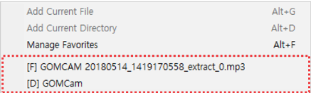 | Add Current File | Add the currently playing video file to the Favorites list. This feature is activated while the video is played. |