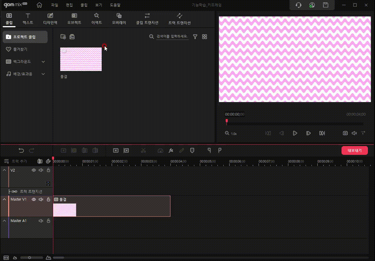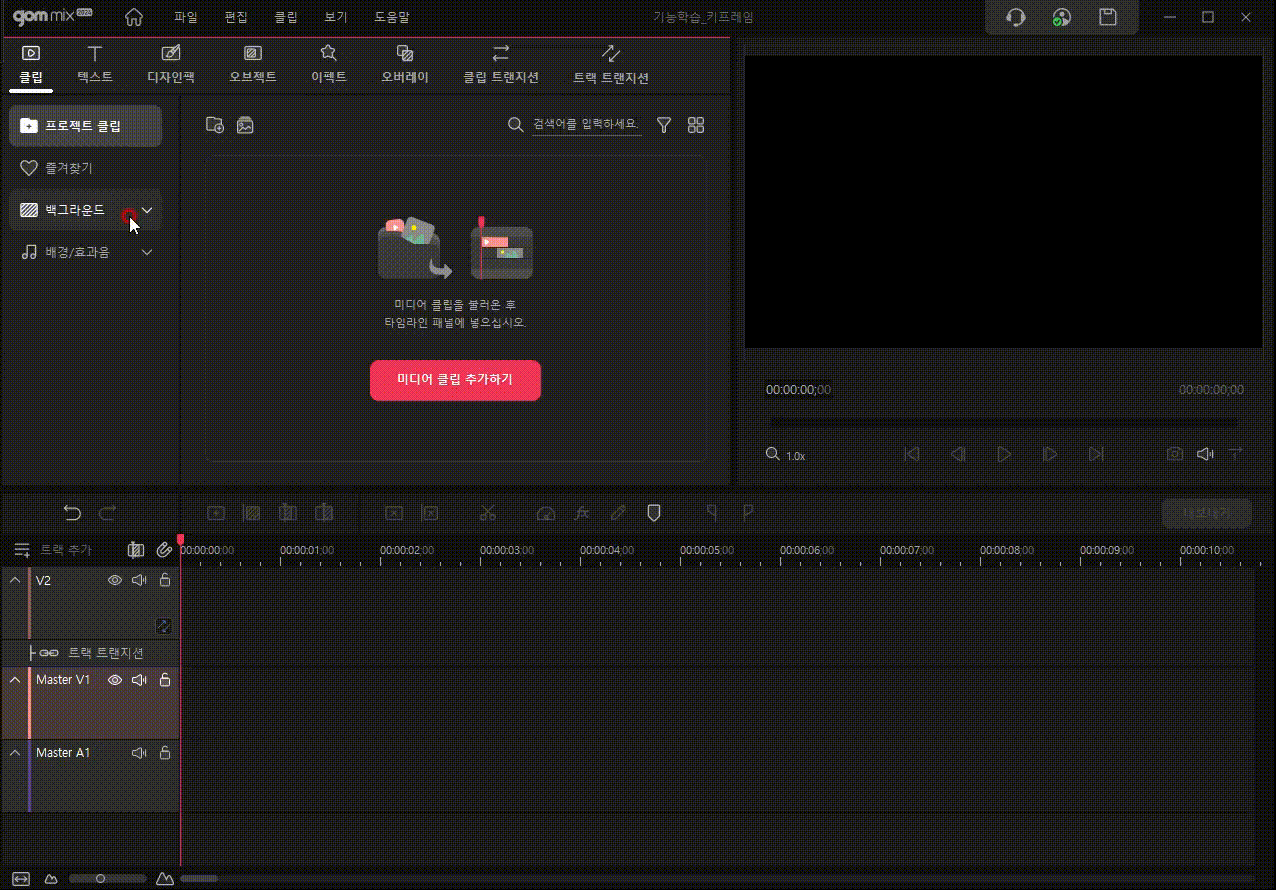 먼저 백그라운드 클립을 만들고 타임라인 작업 영역에 넣습니다.