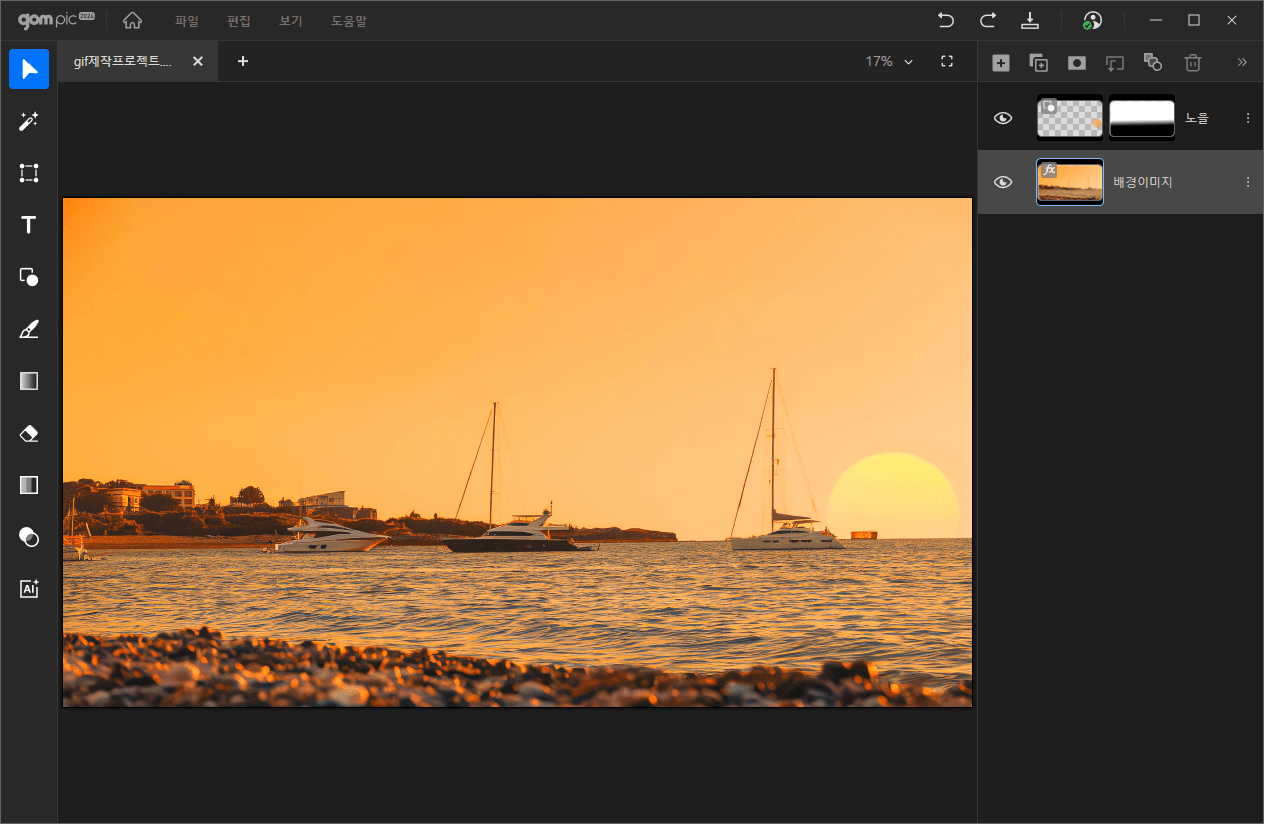 선택한 이미지를 그라데이션으로 색상을 변경할 수 있습니다.