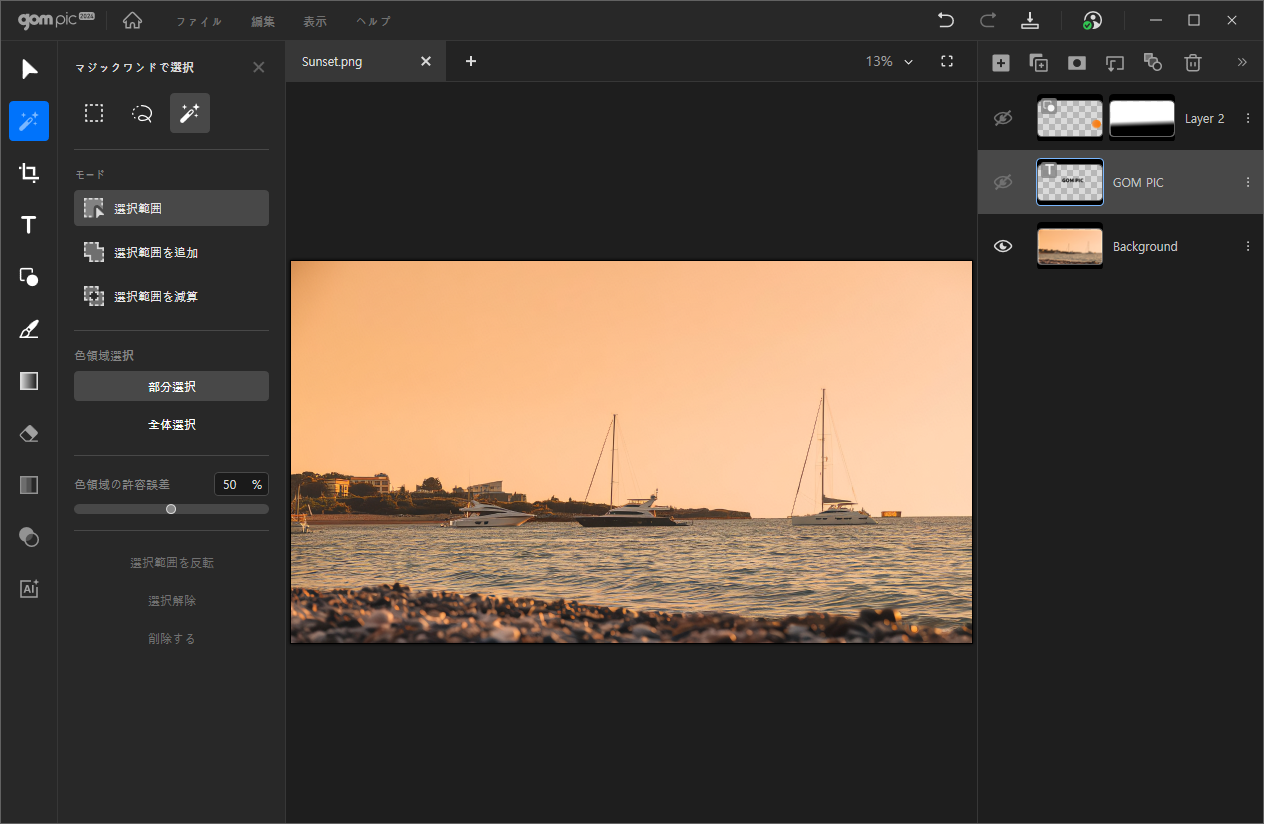 | 色領域の許容 | マジックワンドツールの許容度を調整します。 数字を入力するか、スクロールをドラッグして調整できます。 |