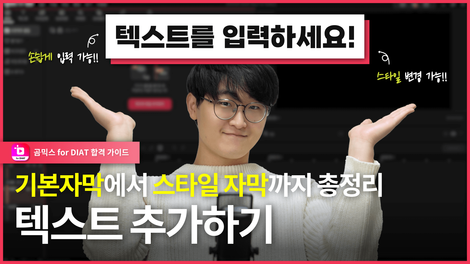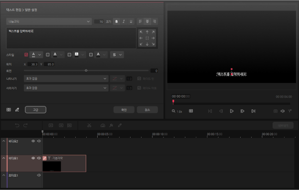 텍스트 기본 편집 기능과 배경, 윤곽선 등을 이용하여 다양한 스타일 제작과 애니메이션을 추가하여 다채롭게 연출할 수 있습니다.