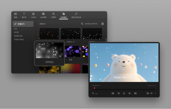 비네팅, 파티클 등 오버레이 클립과 이펙트로