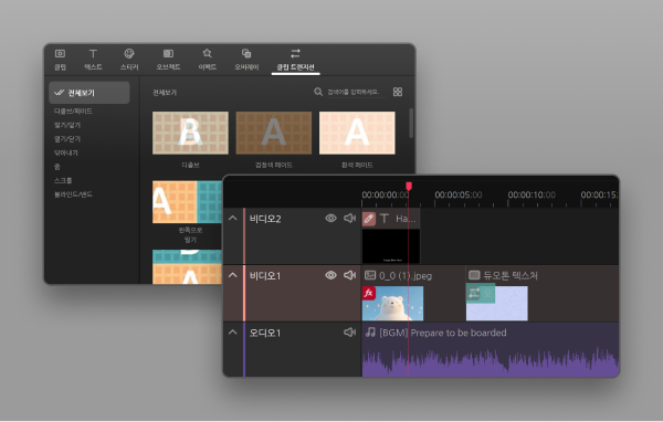 전환 효과인 트랜지션을 통해 클립과 클립 사이를