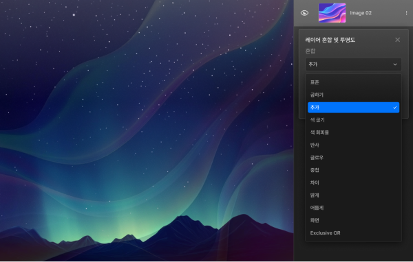 선택한 레이어와 아래에 있는 레이어 간의 자연스러운 합성을