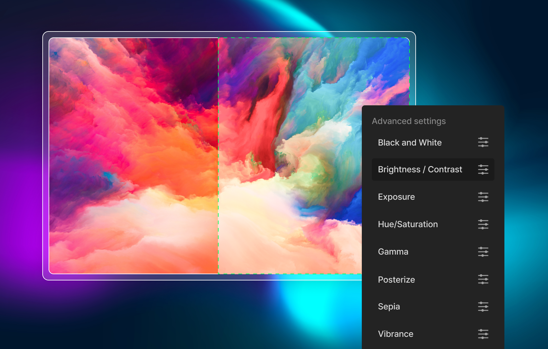 We provide essential editing tools such as crop, paint, brush, resize, add layers and more.