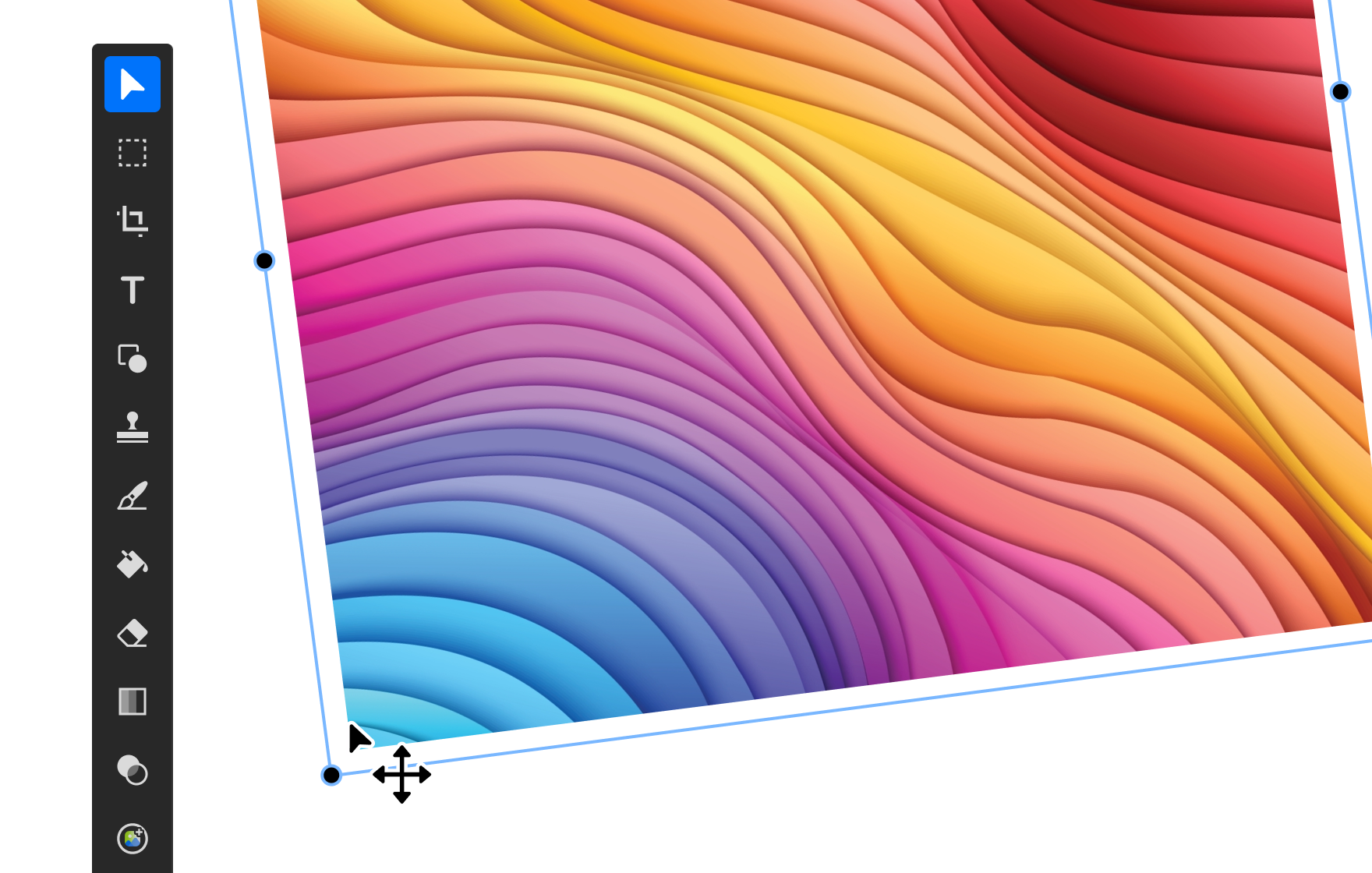 When selecting a shape or lasso, you can change the size and location of the selected area by clicking the button at the bottom right of the selected area.