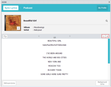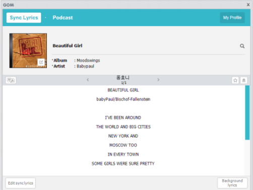 GOM Audio synced lyrics is an internet service. Lyrics feature cannot be used without an internet connection. Please check your internet connection status.