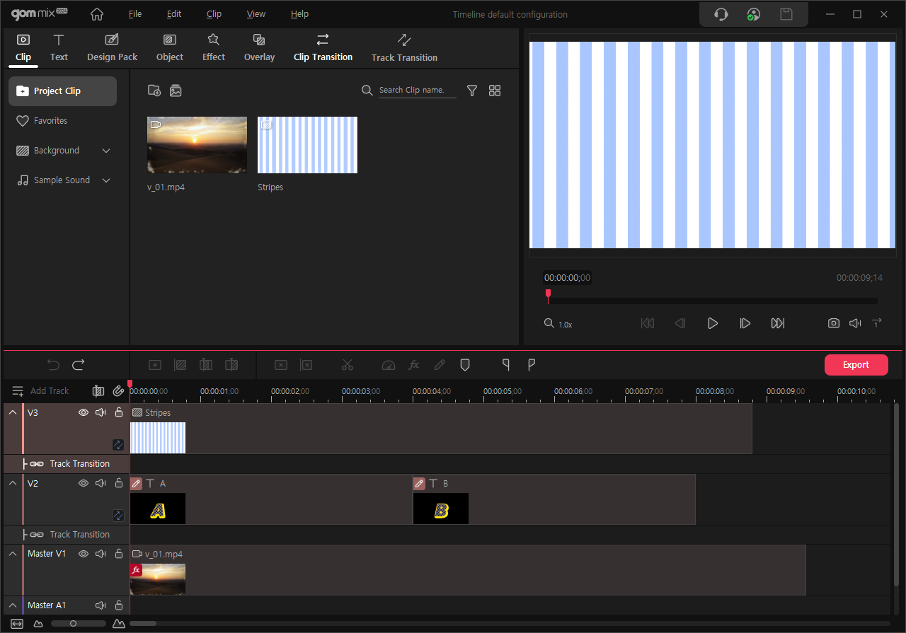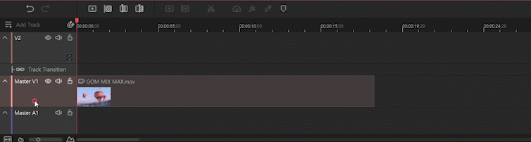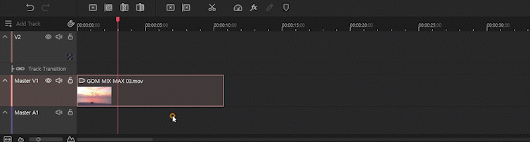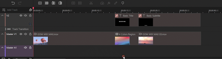 In the timeline work area, you can place the clips according to each time and make a video. GOM Mix uses a layer concept. It is a multi-track type of player that edits clips accumulated on the top track. Video edited in the timeline can be checked in the Preview panel monitor screen. For example, if you change sizes, position, and opacity by applying the [Transform] effect to the top clip, then the clip at the bottom track will be displayed even if there are many clips on it.