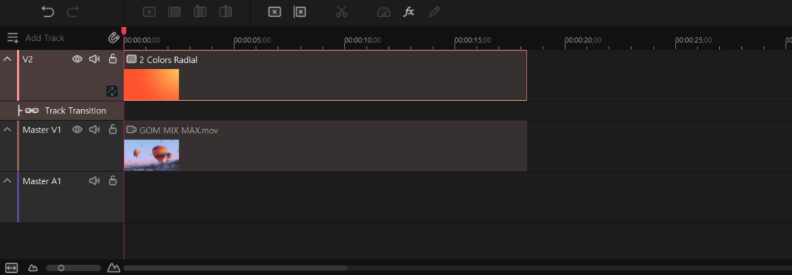Enter the Track Transition Property Setting to see the “Track transition control clip” between the transition tracks or video tracks of the timeline panel.