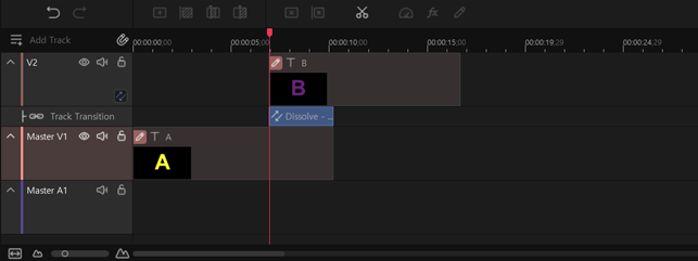 Go to the Track Transition tab and select the “Dissolve” effect under the “Dissolve/Fade” category.