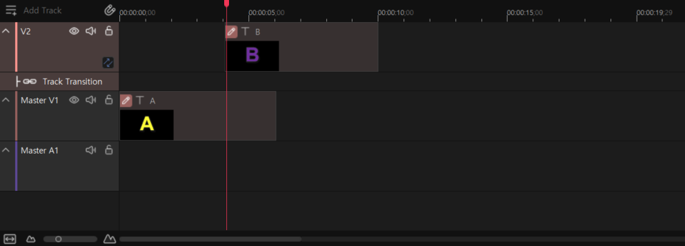Track Transition is arranged in between each clip at the upper and lower tracks.