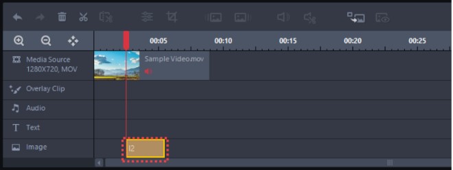 Double-click the position in the Media Source track where an image will be added. The red line marker is moved to this position.