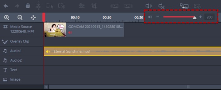 You can control the audio volume in a video source or an audio file added to the audio track.