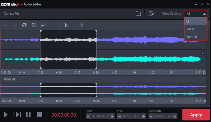 ): Leaves the selected audio waveform and removes the rest. - Cancel selection(