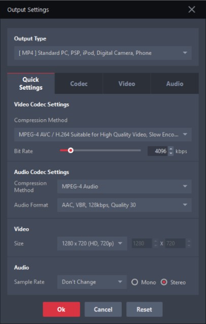 Click Output Settings in the encoder. The Output Settings window will appear.
