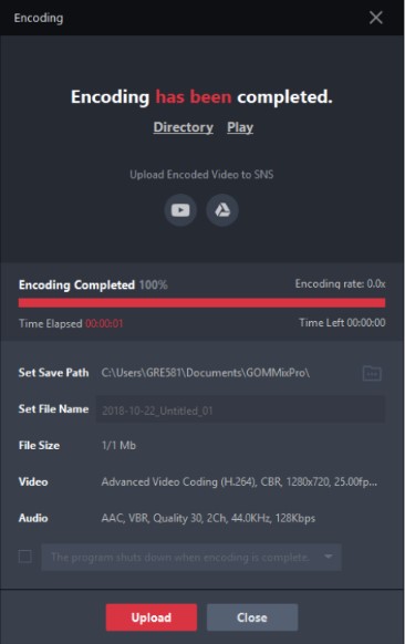 - The program shuts down when encoding is complete: Shuts down the GOM Mix Pro program when encoding is complete.