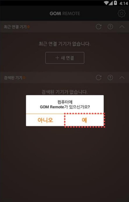 PC에 곰리모트가 설치되었는지 확인한 후, 예 버튼을 터치하세요.