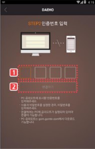 보안키 발급 화면에 인증 번호가 나타나면 모바일 기기의 인증 번호 입력칸에 입력한 후 확인 버튼을 터치하세요.