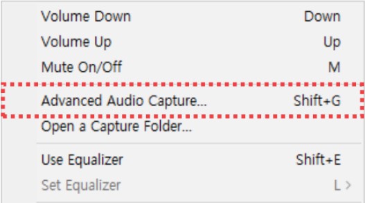 Select the Audio > Advanced Audio Capture menu in the basic menu.