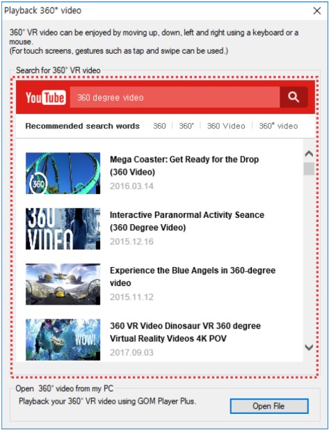 | Playback 360° video | Import 360。 videos in your PC or in the internet. |