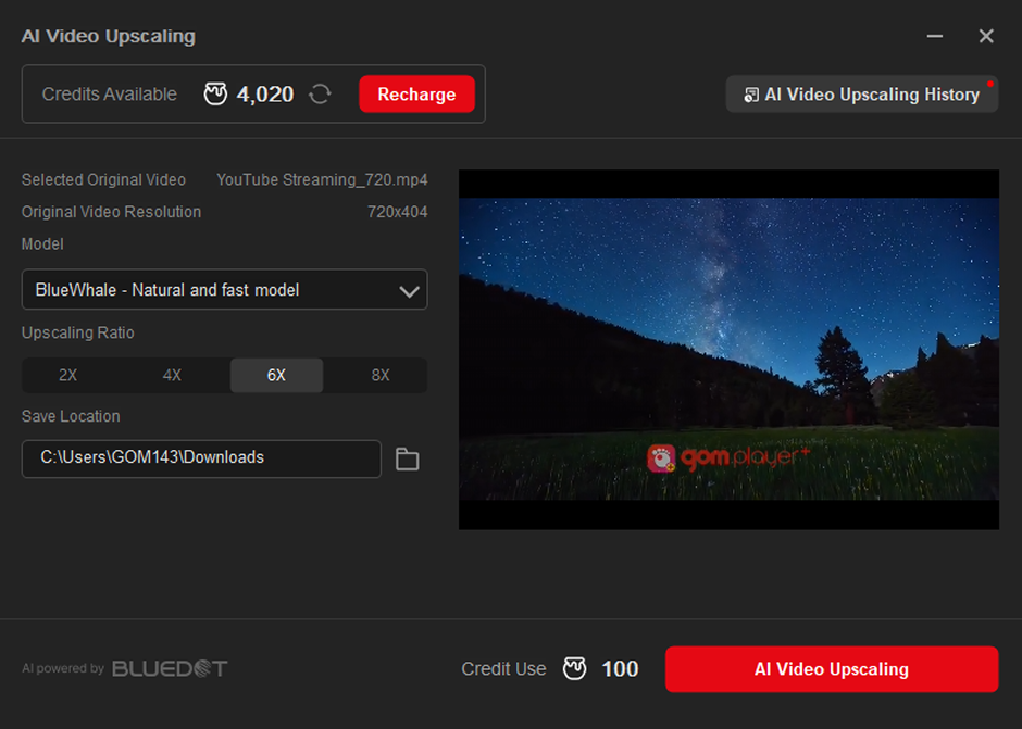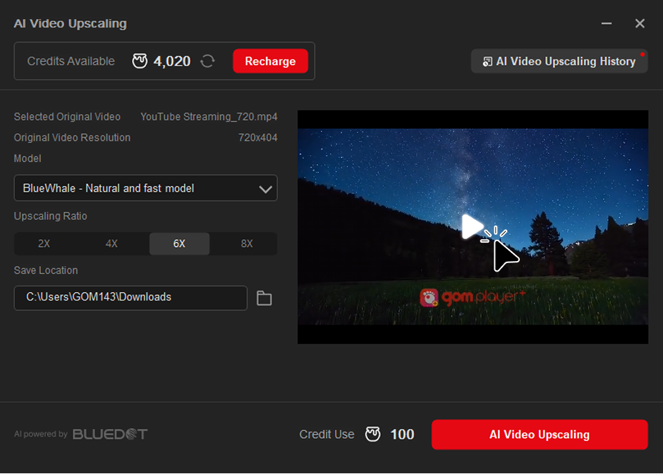 - 1) When you activate the AI Video Upscaling pop-up, a preview video will automatically appear.