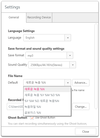 Click the [Advanced] button and you can directly add or delete the desired file name in the window that will be created.