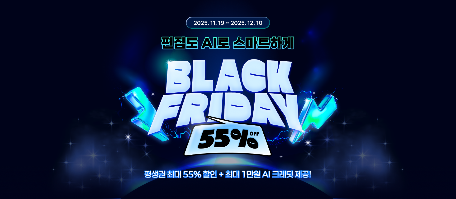편집도 AI로 스마트하게, BLACK FRIDAY 55% OFF