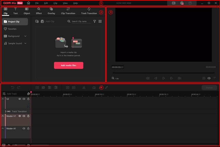 It is composed of Clip, Text, Object, Effect, Overlay, Clip Transition and Track Transition tabs. A video clip used in the project can be uploaded into the project list. You can choose and add effects, overlay, or clip transitions, track transitions in the selected clip in the Timeline panel. |