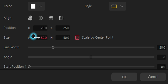 | 3. | Since we want the starting size of the background to be 0%, let us go to the “Size”to change it from 100% to 0%. | ||