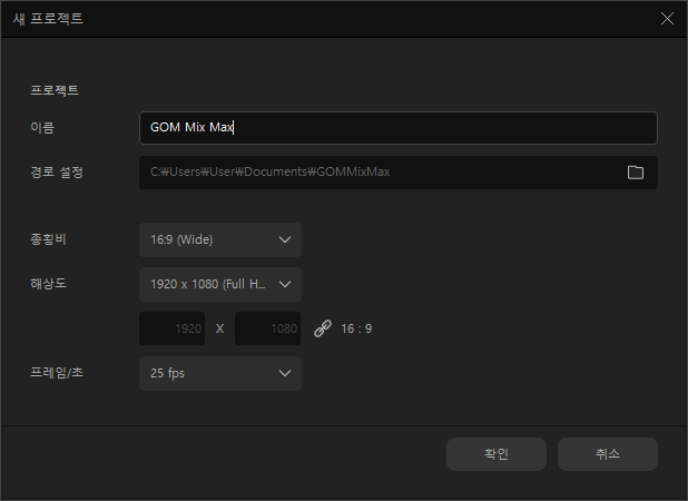 | 프로젝트 경로 설정 | 프로젝트 파일이 저장되는 폴더 위치입니다. 버튼을 누른 후 폴더를 변경합니다.
