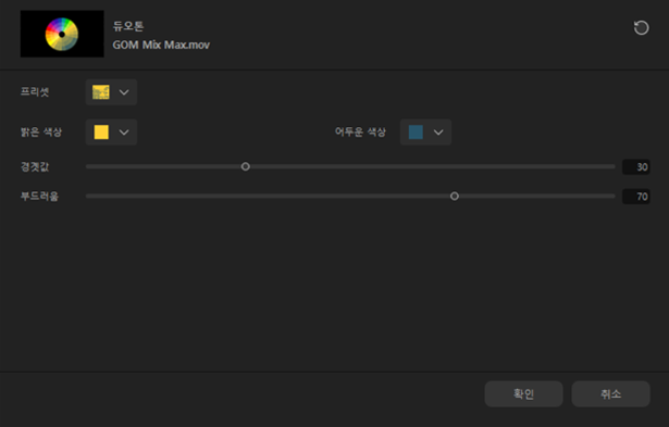 듀오톤은 그레이스케일의 느낌이지만 흰색과 검정색이 아닌 지정된 2가지 색상으로 영상을 변경합니다.
