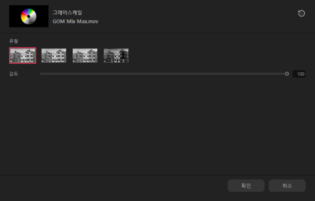 영상을 흑백으로 변환할 때 사용하는 기능입니다. 컬러 영상을 그레이스케일로 변경하면 색상 지정을 할 수 없습니다.