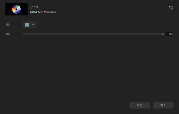 강도 100%가 될 때 순수 강조한 색상으로 영상을 보정합니다.
