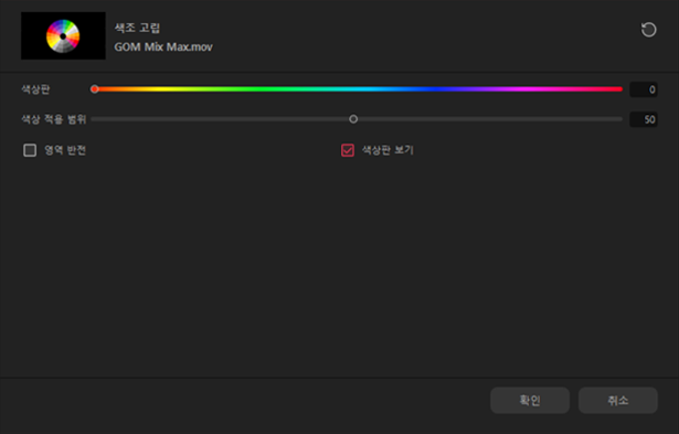 색상 적용 범위 색상판에서 고립시키고자 하는 색상의 범위를 잡습니다.