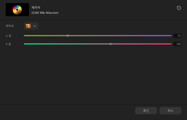 프리셋 대표적인 세피아를 프리셋으로 제공합니다.