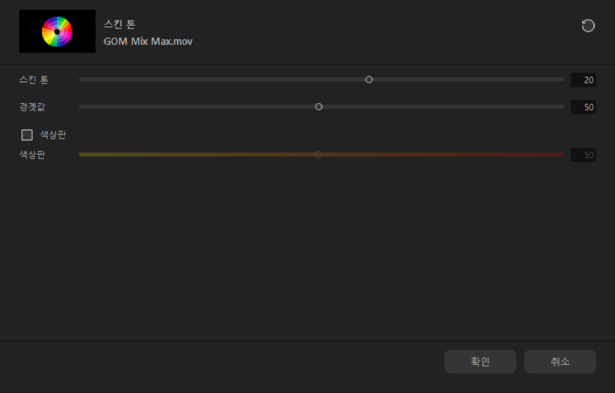 색상판 색상판 체크가 되어 있을 경우 색상판의 영역을 변경시키면서 스킨 톤을 변경합니다.