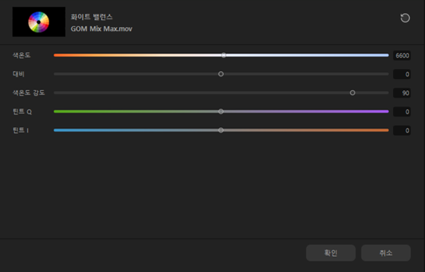 이상적인 흰색을 맞추기 위해 빛의 색온도를 조정하여 순수한 흰색이 표현되게 하는 기능입니다.
