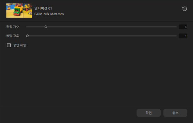 | 타일 개수 | 클립을 보여주는 가로/세로 화면의 개수입니다.