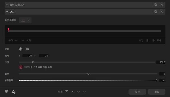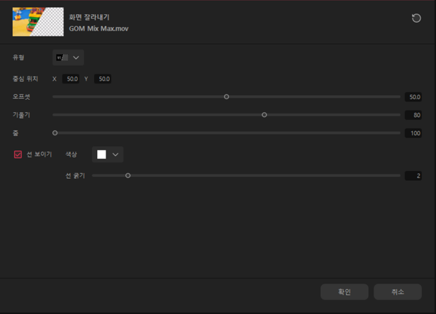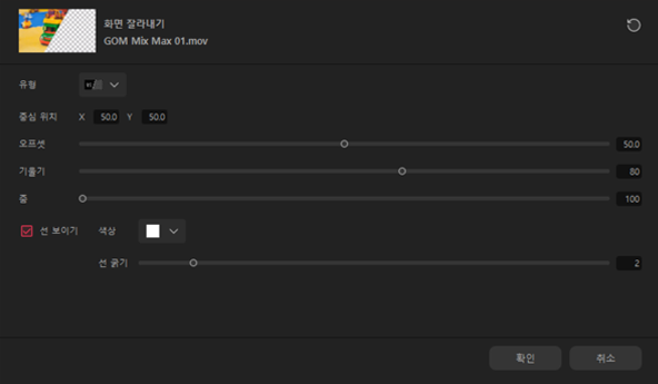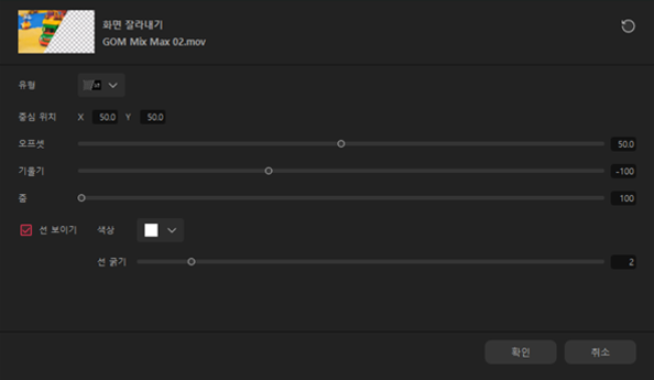 | 중심 위치 | 잘라낸 클립 화면에 실제로 보여질 클립의 위치를 이동합니다. | ||