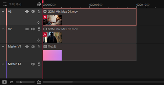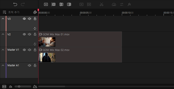 | 1. | 2개의 클립을 같은 시간대로 트랙 위아래로 배치합니다.