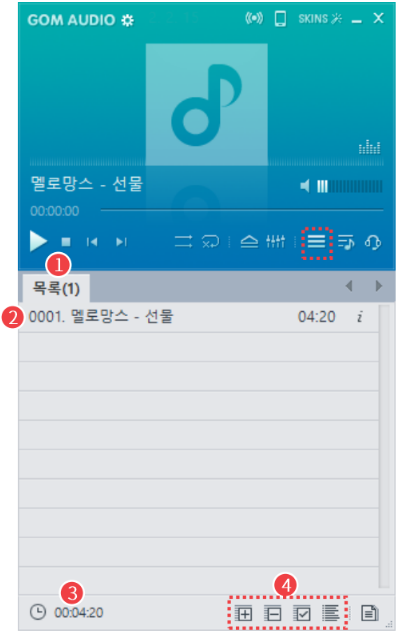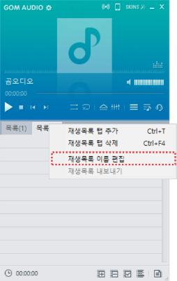 오디오 파일을 원하는 대로 분류하여 감상할 수 있습니다. 재생목록은 메인영역에서 재생목록창(F7)을 클릭하면 나타납니다.