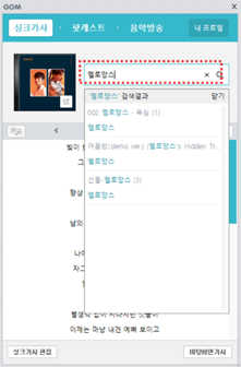 원하는 항목을 선택하면 서버에 등록된 가사가 적용됩니다.
