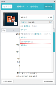 싱크 가사 창에서 노래 제목을 클릭합니다.
