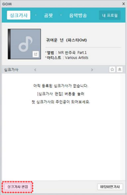 싱크 가사 등록은 SNS 연동 또는 GOM 제품 ID/PW로 로그인하셔야 합니다.