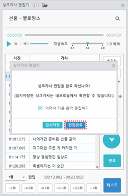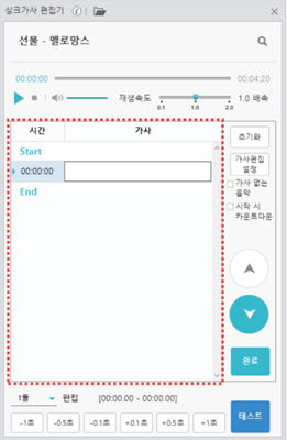직접 가사를 싱크에 맞춰 편집하거나 등록할 수 있습니다.