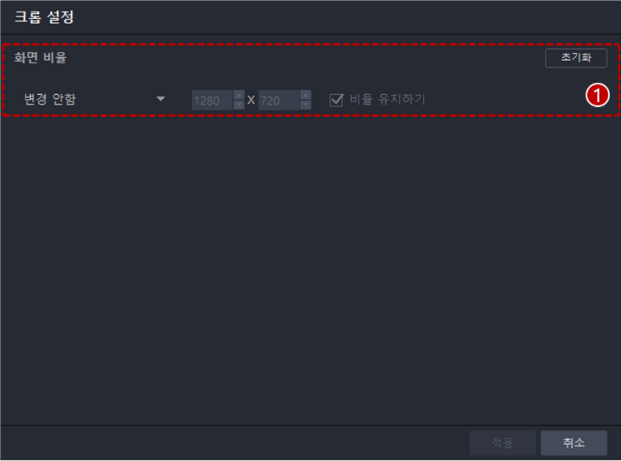 크롭 설정 시 크롭할 영상의 비율을 설정할 수 있습니다. 사용자 정의를 선택하면 크기 조정 부분이 활성화되어 크롭할 화면의 크기를 직접 설정할 수 있습니다.