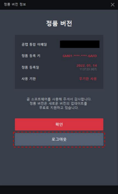 - 구입해서 사용 중인 정품 라이선스가 여러 개일 경우에는 곰랩 마이페이지에서 라이선스를 선택하여 인증 해제할 수 있습니다.